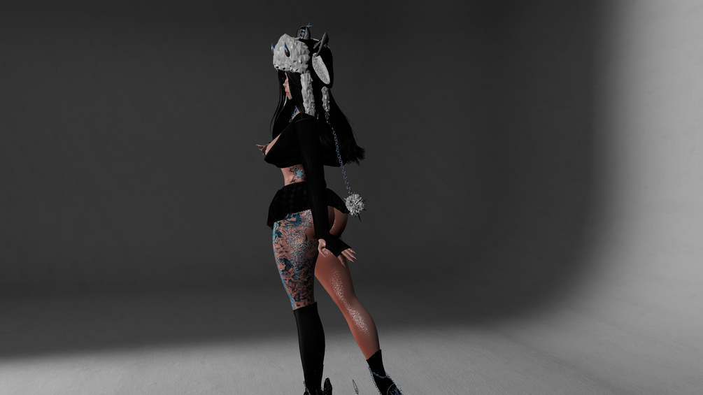 ⇢ ˗ˏˋ 2 hairs,3tops, skirt, Harness, Belt, heels, glasses, bunny ears, bunny tail, hat, pasties, panties, face and body piercings, arm warmers, leg warmers, ball chain,necklace, right leg wrap࿐ྂ